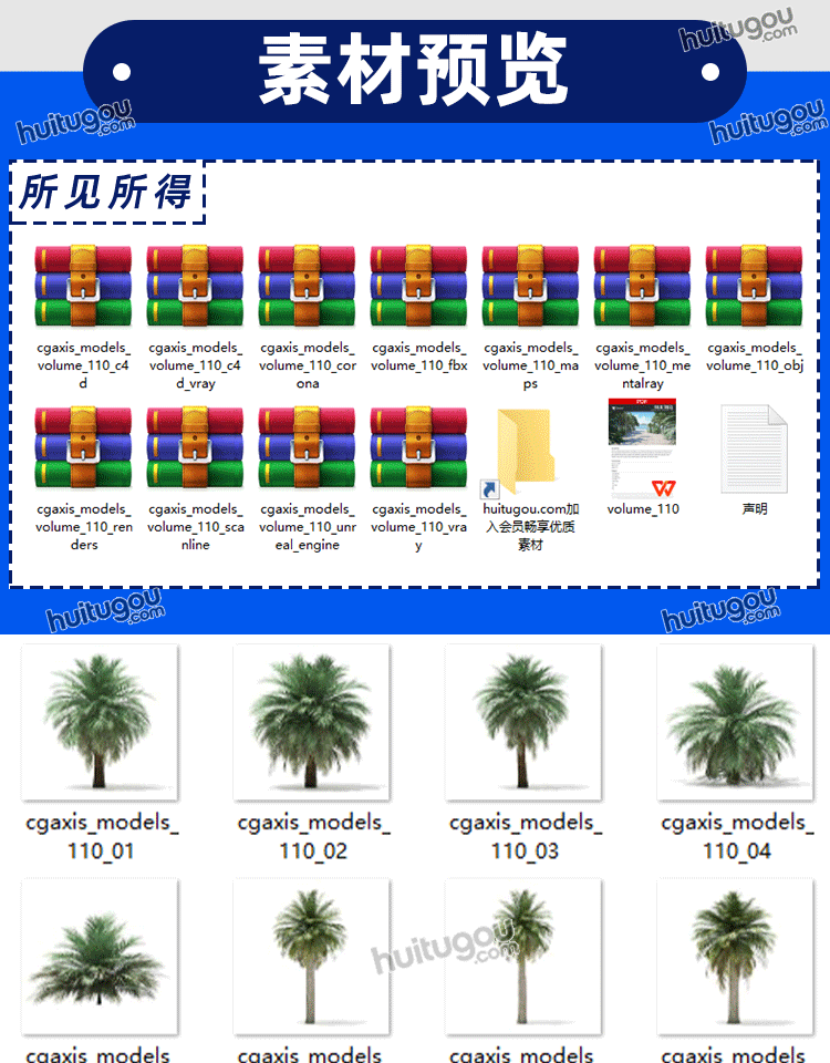 CGAXIS Palm Trees[棕榈树]热带植物棕榈树3D模型max素材C4D FBX