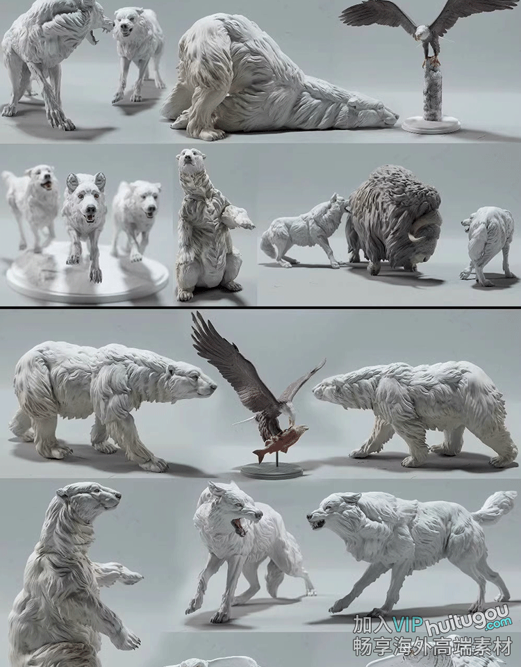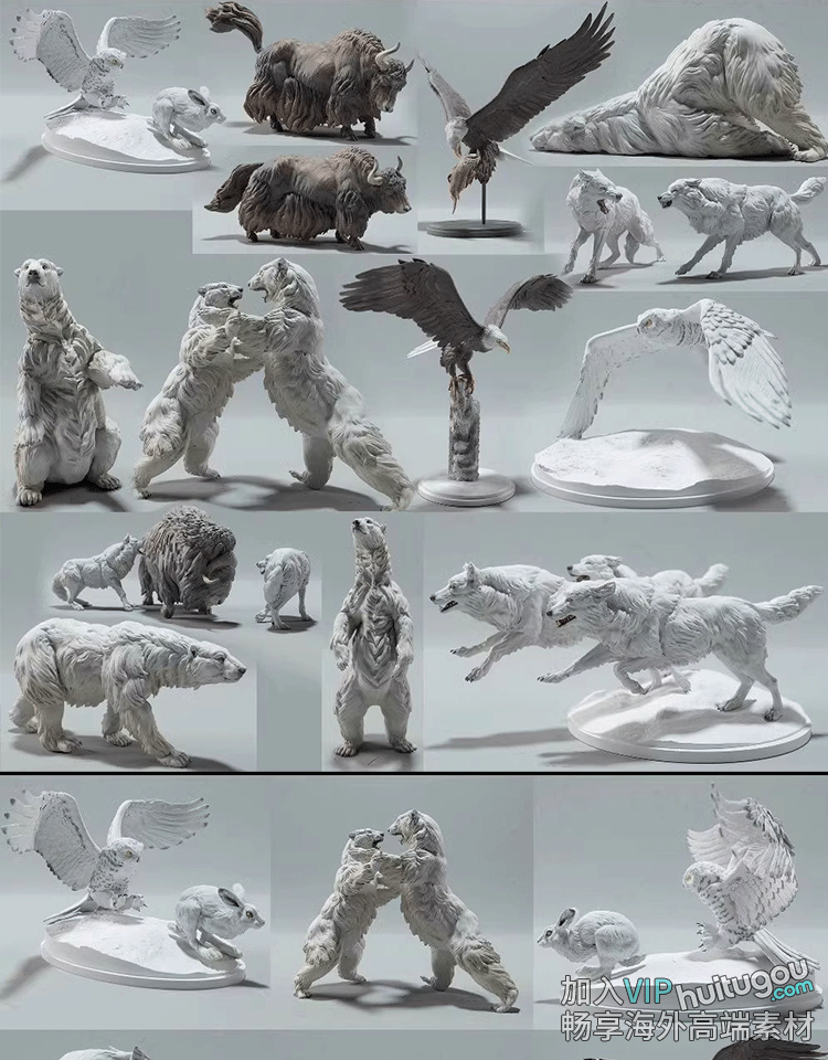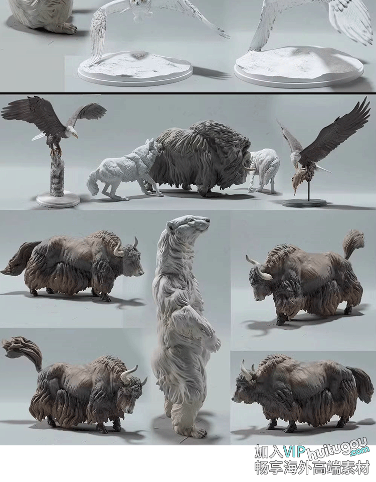 动物北极熊麝牛狼野牦牛雪鸮兔老鹰圆雕图STL文件3D打印模型图纸