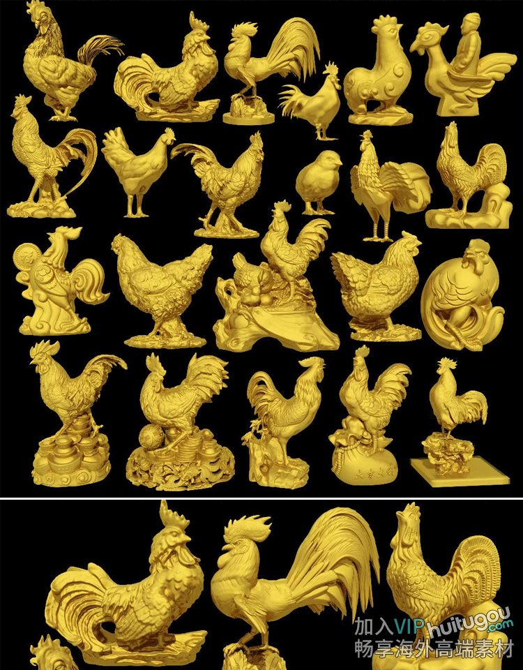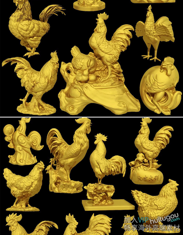 动物鸡公鸡母鸡小鸡生肖圆雕图雕刻机STL文件3D打印模型图纸合集