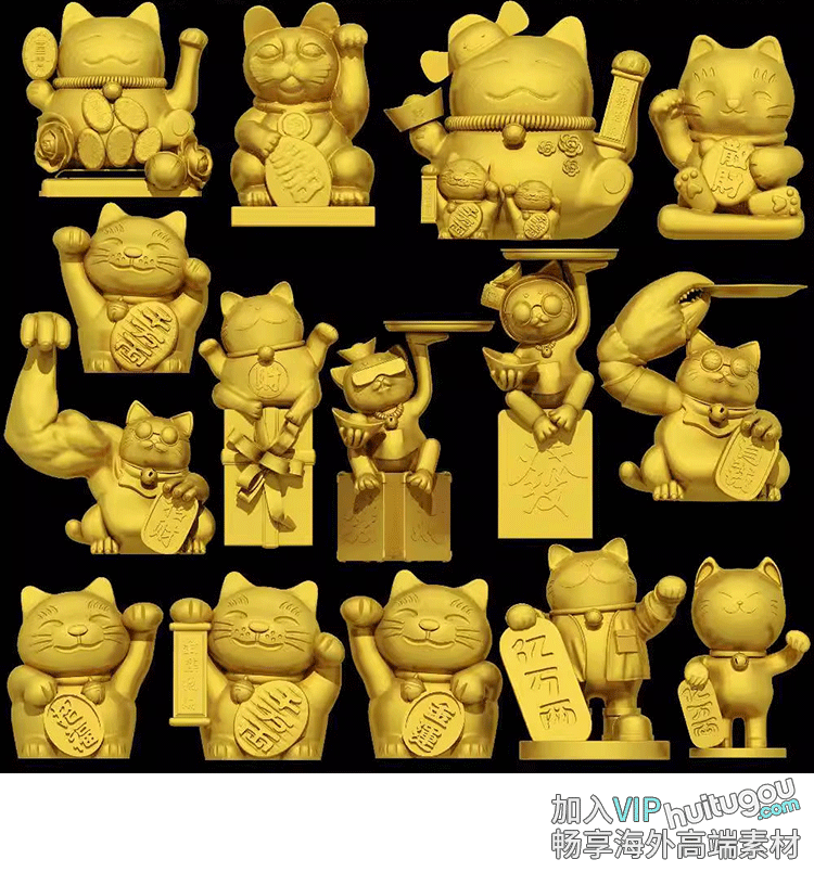 潮玩招财猫三维立体圆雕图雕刻STL文件雕像3D打印手办模型图纸集