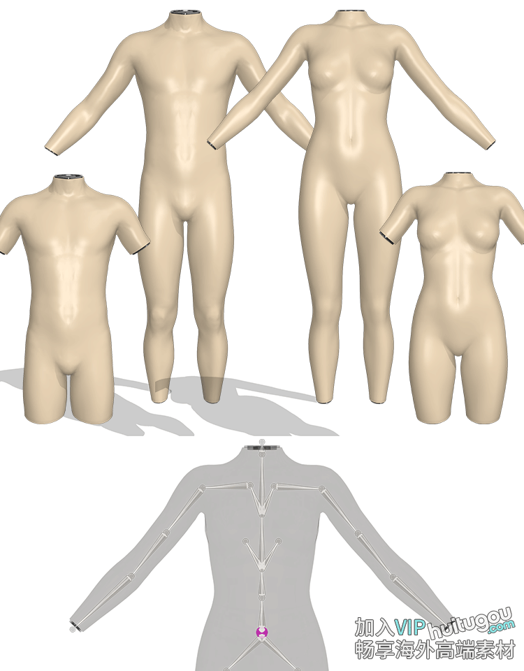 MD素材CLO3D虚拟人台模型男女半身全身AVT格式模特带骨骼可调姿势
