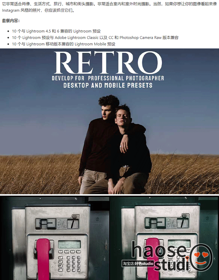 lightroom预设PS修图滤镜平板Lr预设 复古风格摄影调色10款Reteo