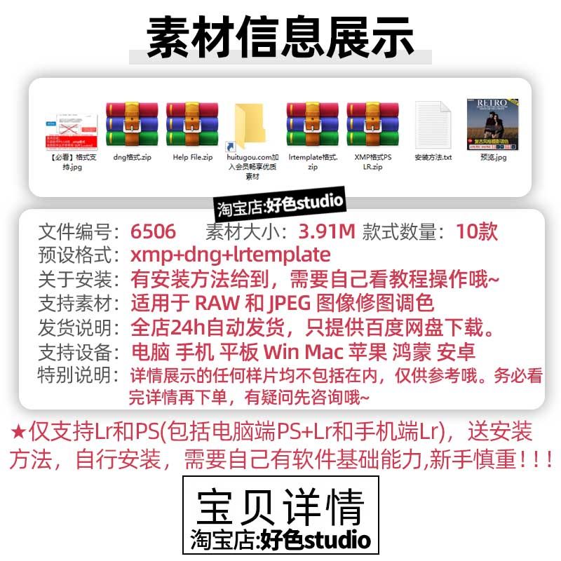 lightroom预设PS修图滤镜平板Lr预设复古人像街拍调色10款Vintage