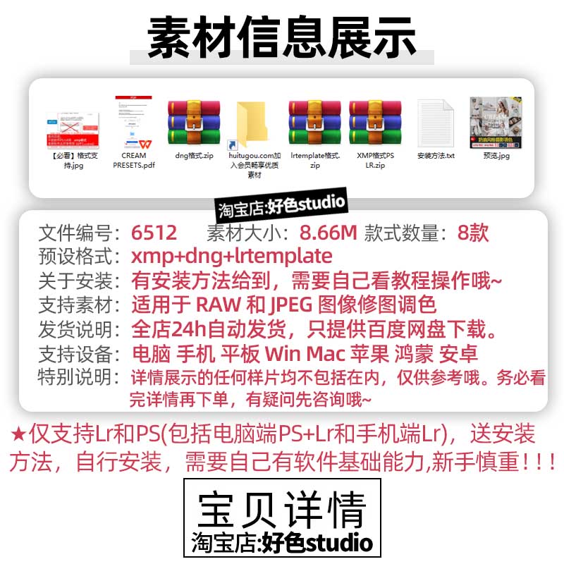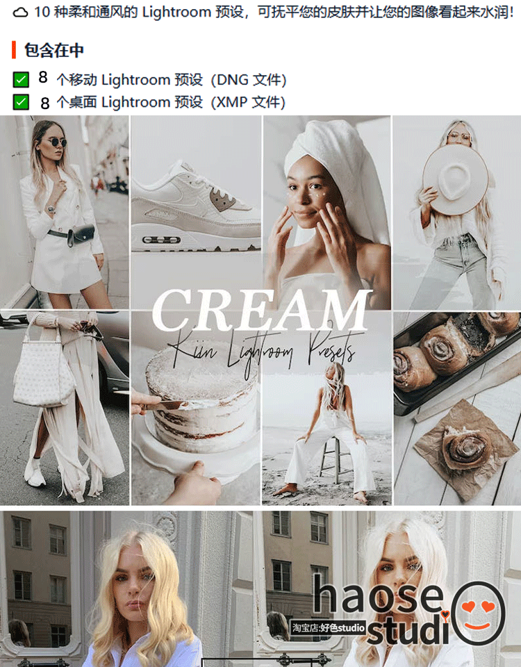 lightroom预设PS修图调色平板Lr预设xmp奶油风格摄影调色8款Cream