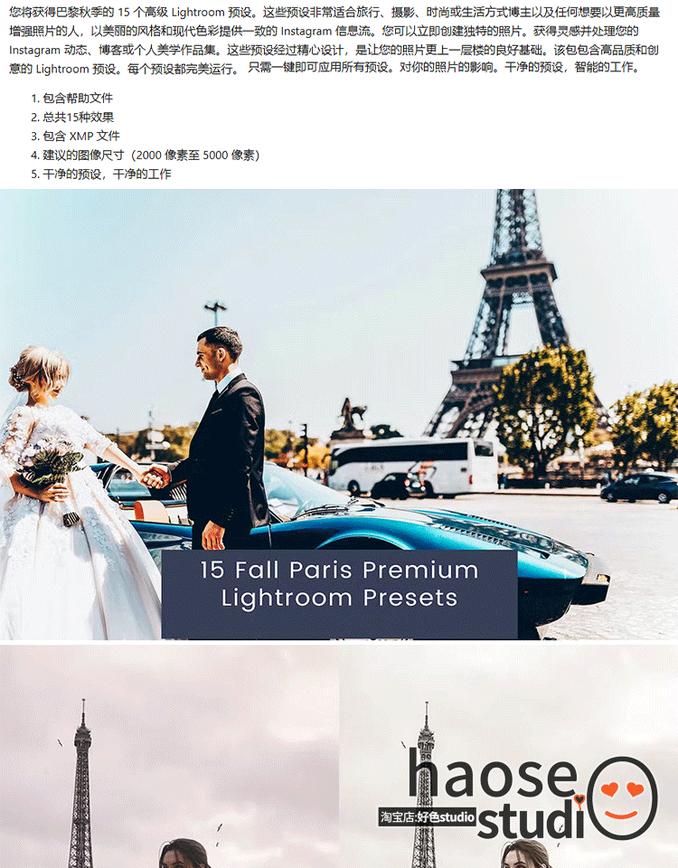 lightroom预设PS滤镜调色Lr预设秋季巴黎旅拍调色15款Fall Paris