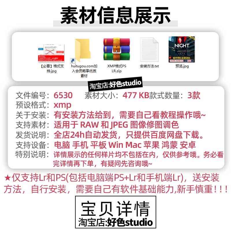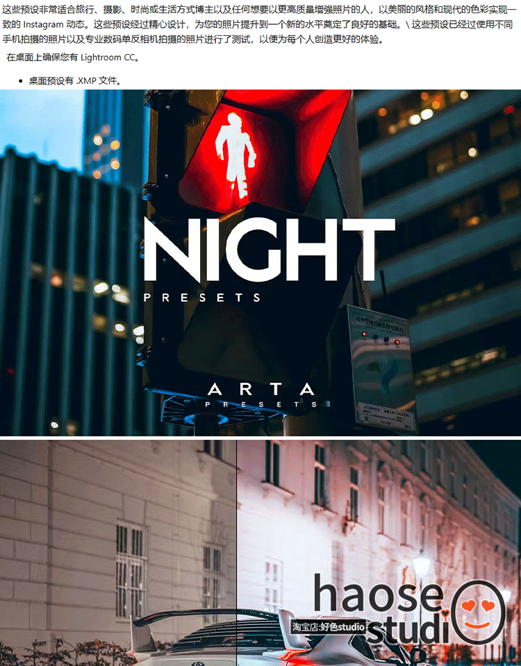 Lr预设PS修图滤镜平板lightroom预设 城市霓虹夜景调色3款Night