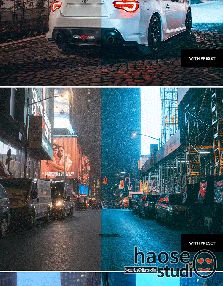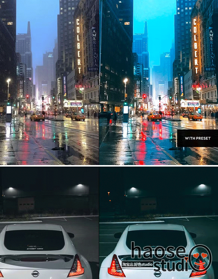 Lr预设PS修图调色lightroom预设街头夜景冷调调色7款Night Street