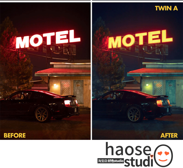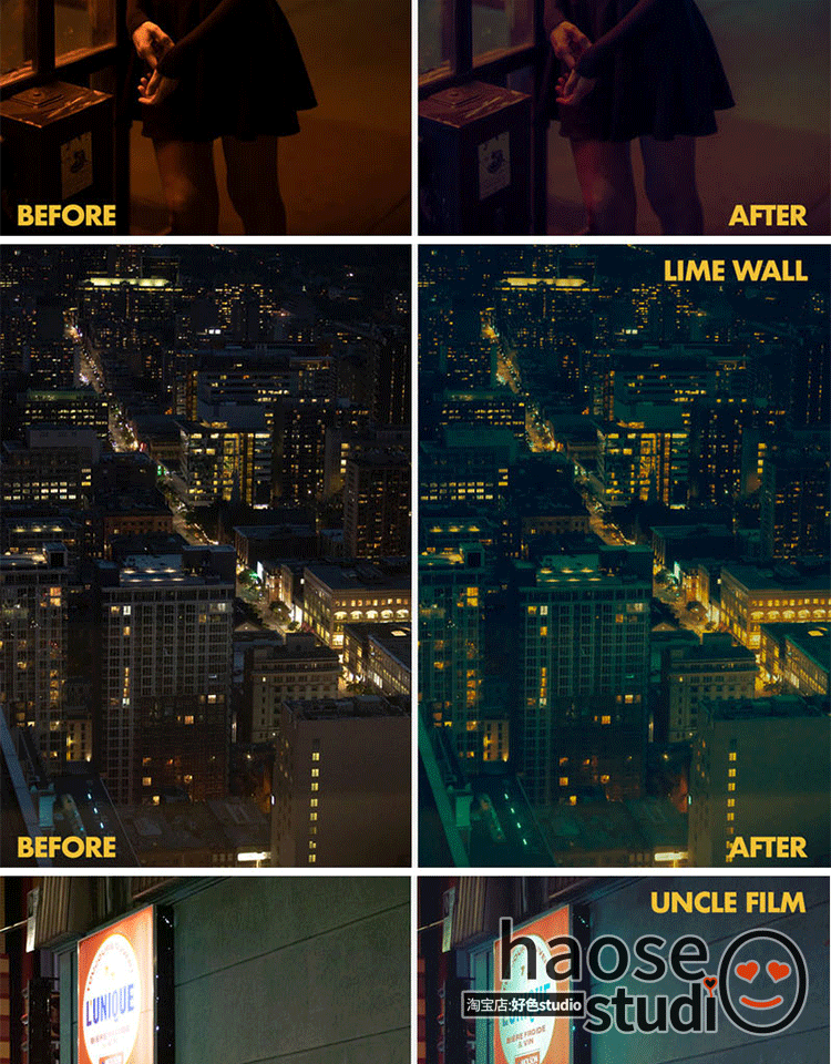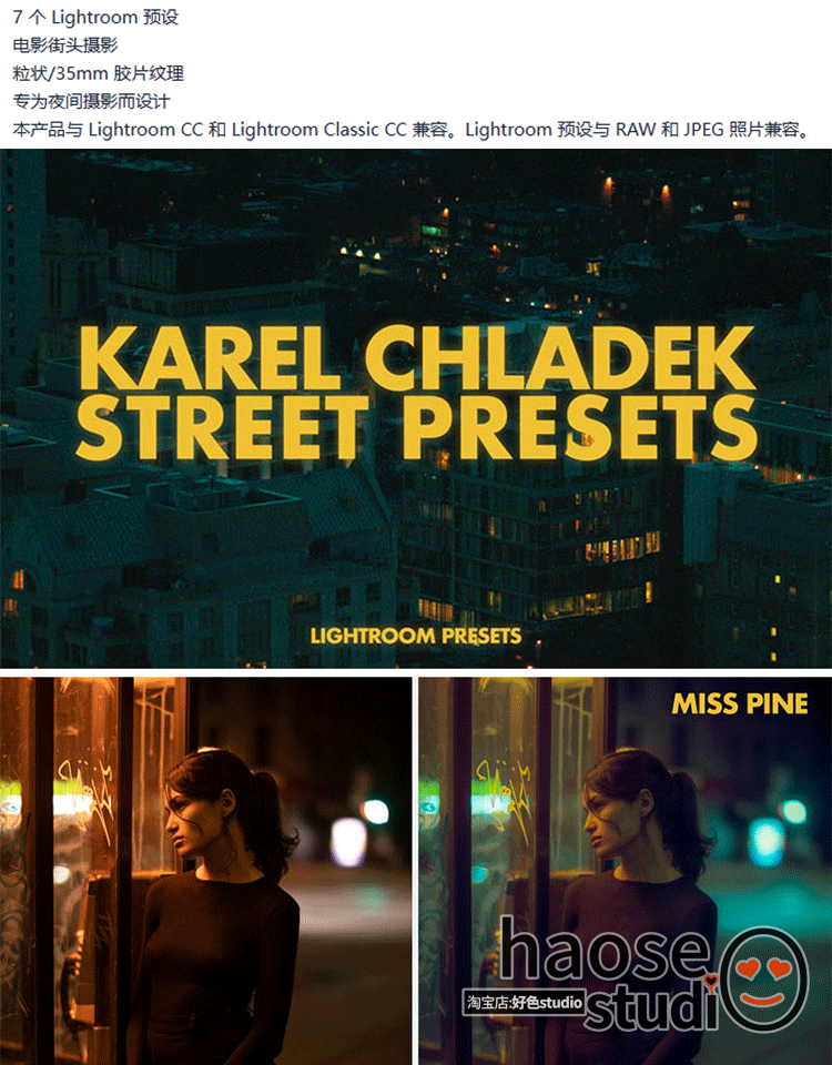 Lr预设PS修图调色lightroom预设街头夜景冷调调色7款Night Street