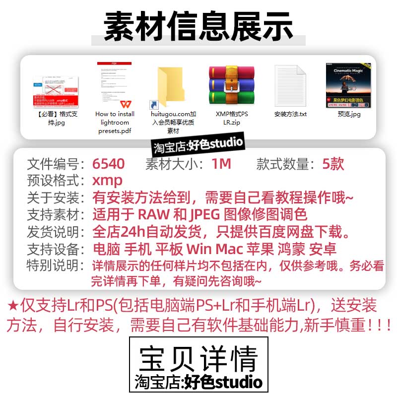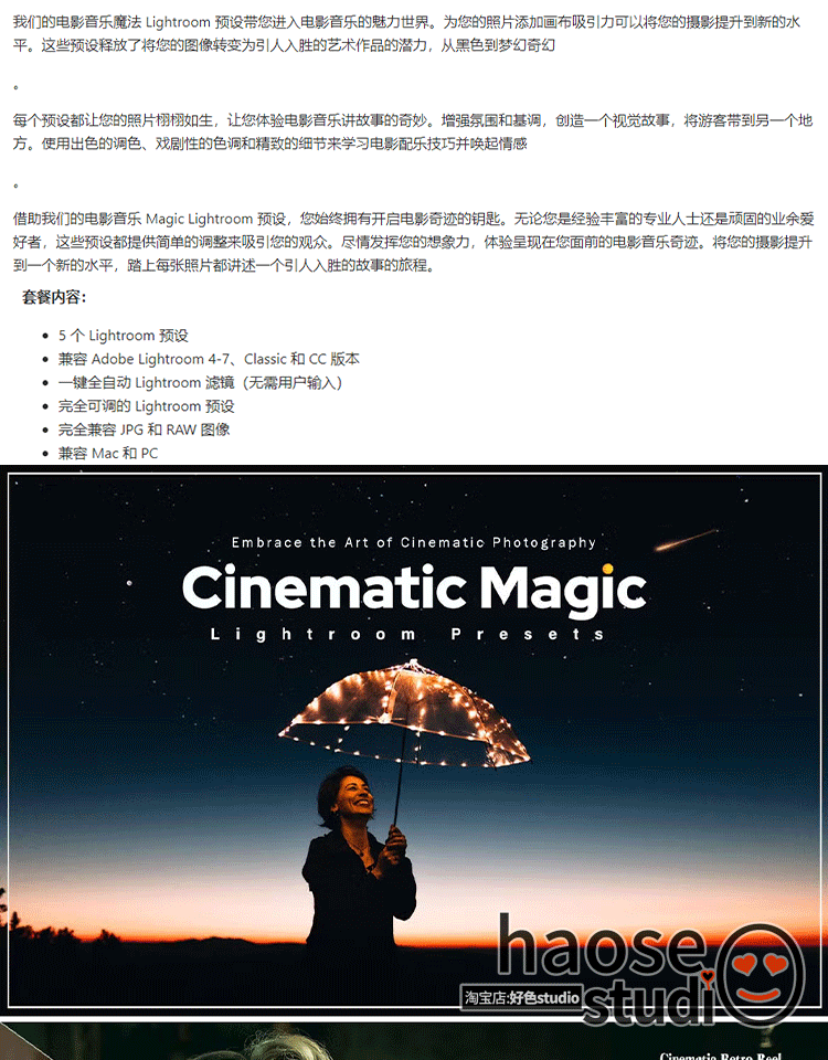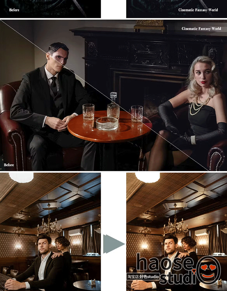 Lr预设PS调色lightroom预设黑色梦幻电影调色5款Cinematic Magic