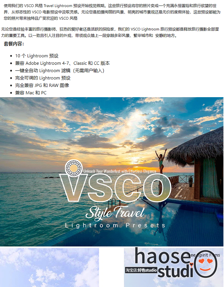 Lr调色VSCO滤镜lightroom预设旅拍摄影调色10款VSCO Style Travel