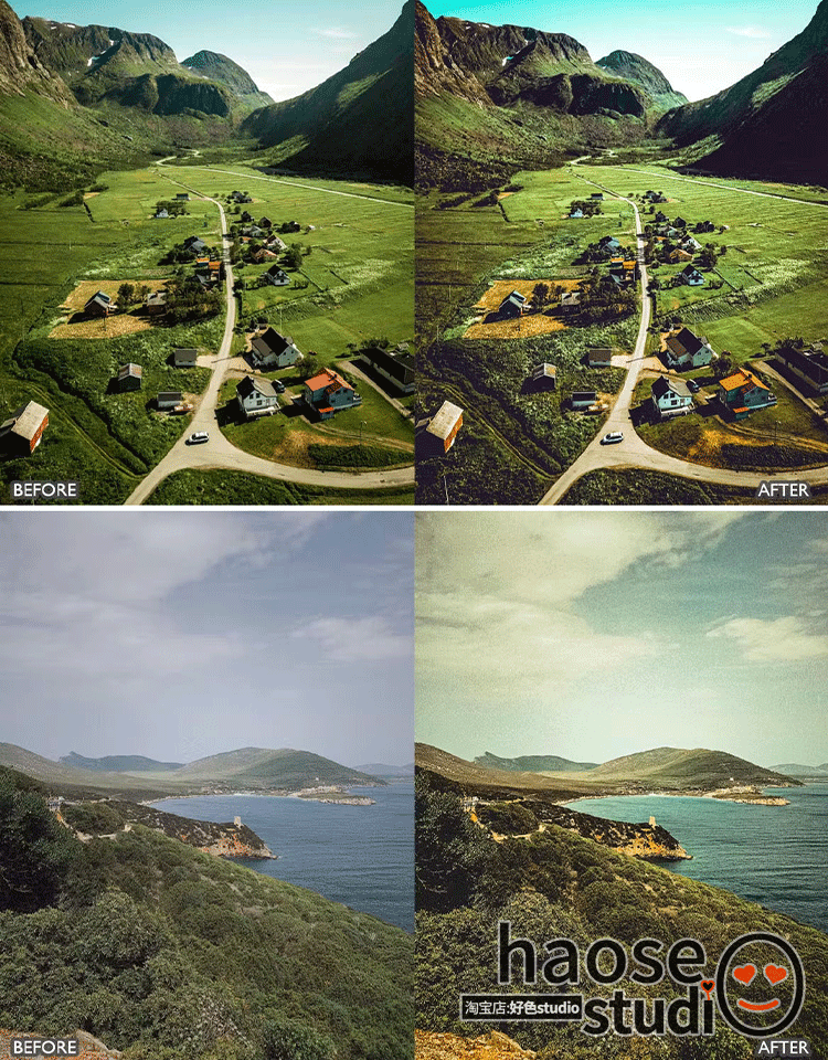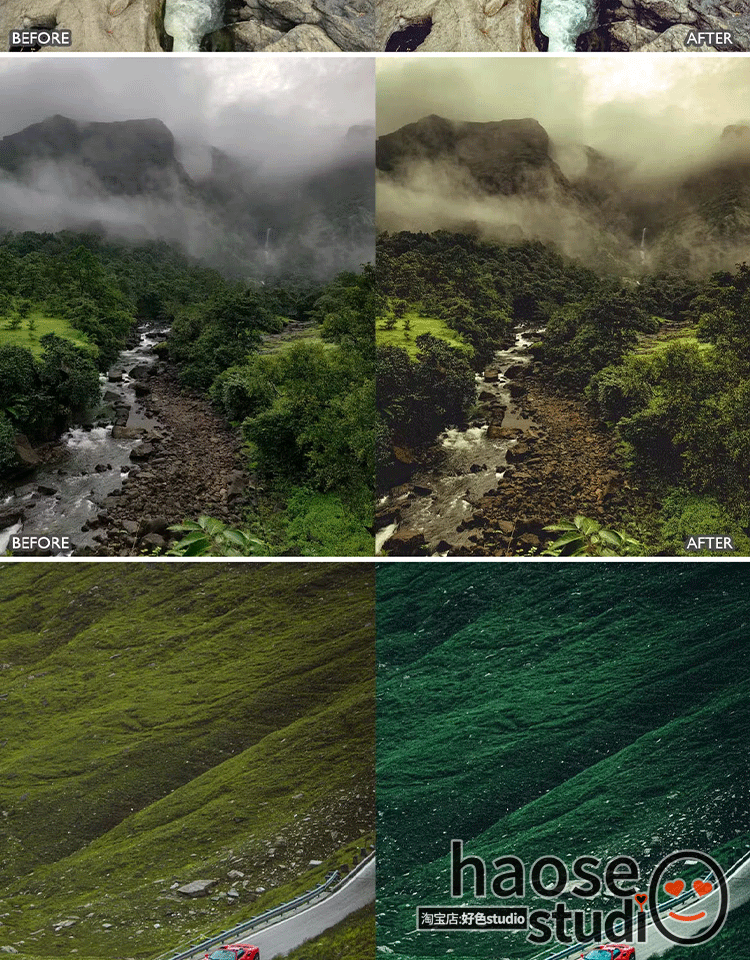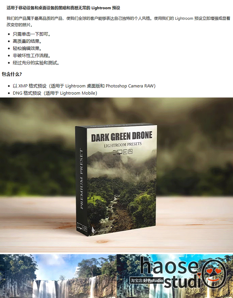 Lr预设PS调色修图 自然风景仙踪绿野航拍调色8款dark green drone