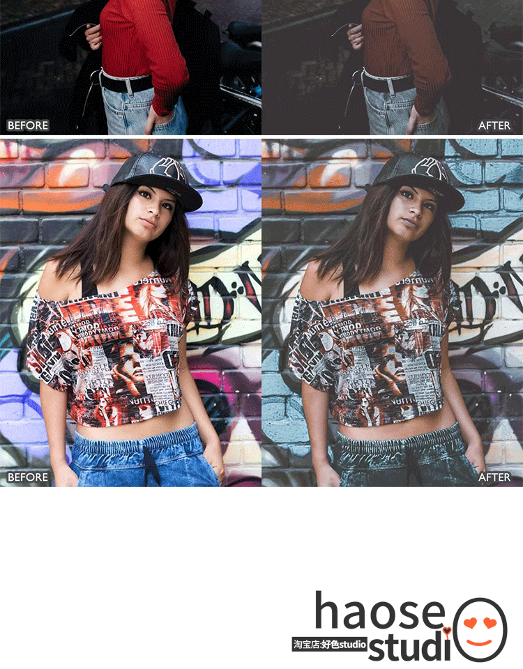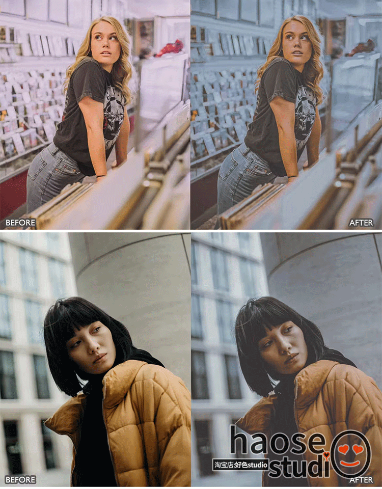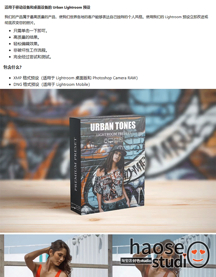 Lr调色预设PS滤镜修图 失色泛白人像 都市暗调街拍调色8款urban