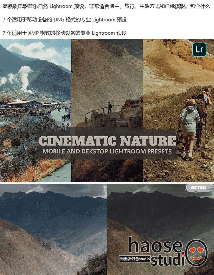 Lr调色预设PS滤镜修图 登山自然旅拍电影调色7款cinematic nature