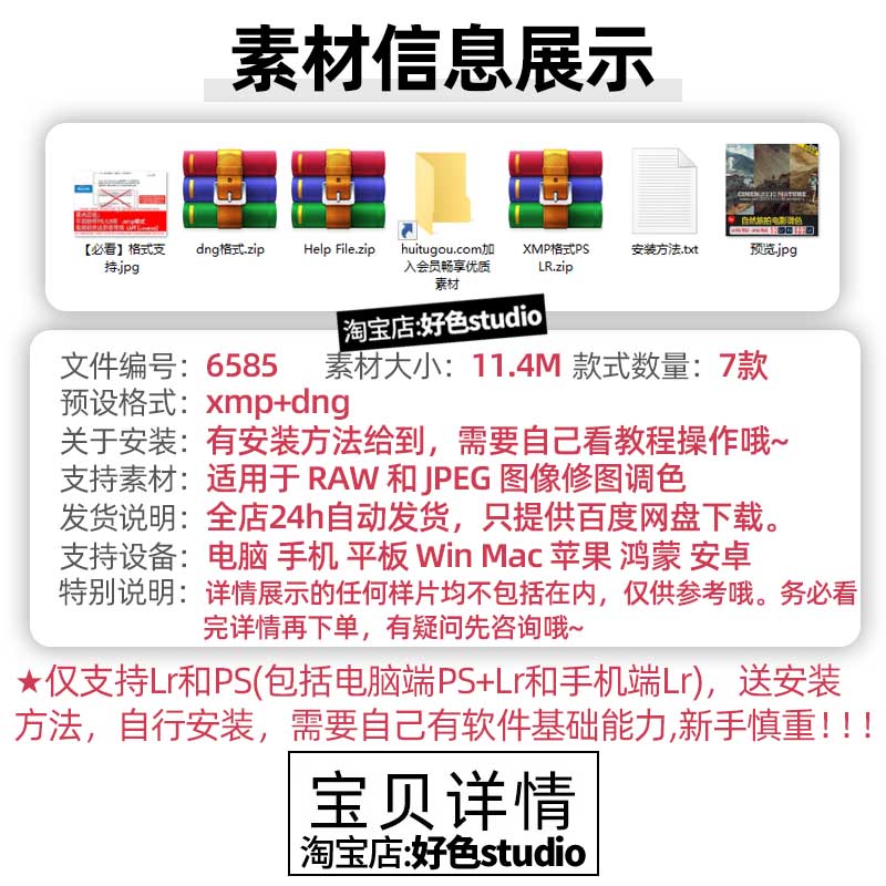 Lr调色预设PS滤镜修图 人像明亮旅拍电影调色7款natural presets