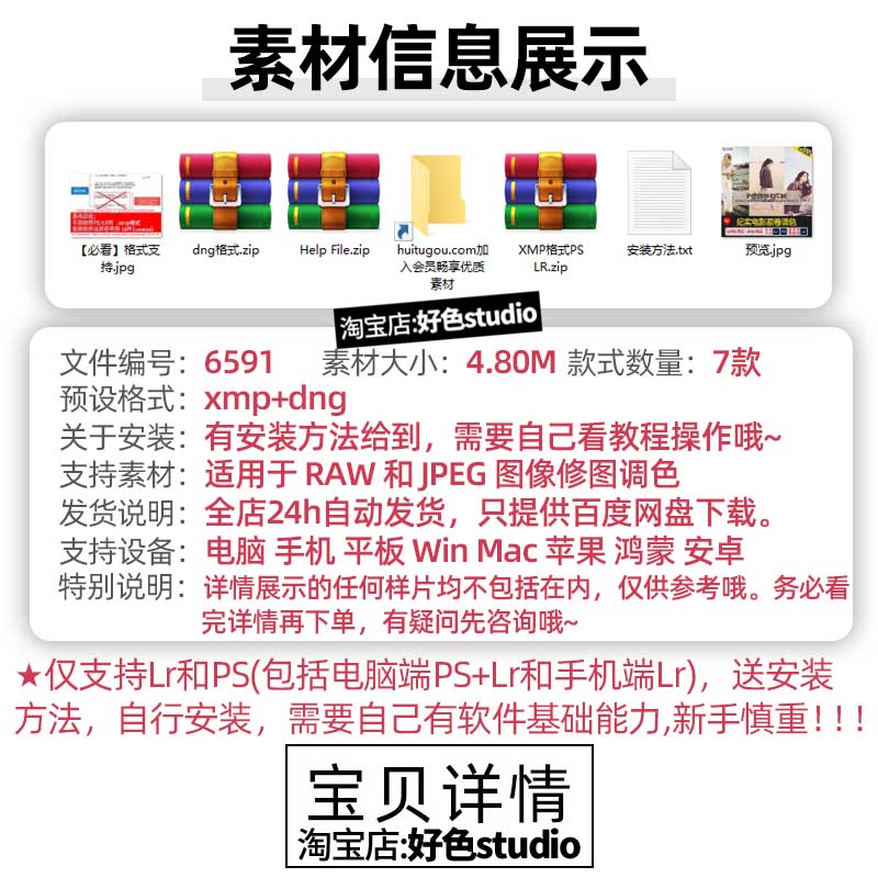 Lr调色预设PS滤镜修图 人像明亮旅拍电影调色7款natural presets