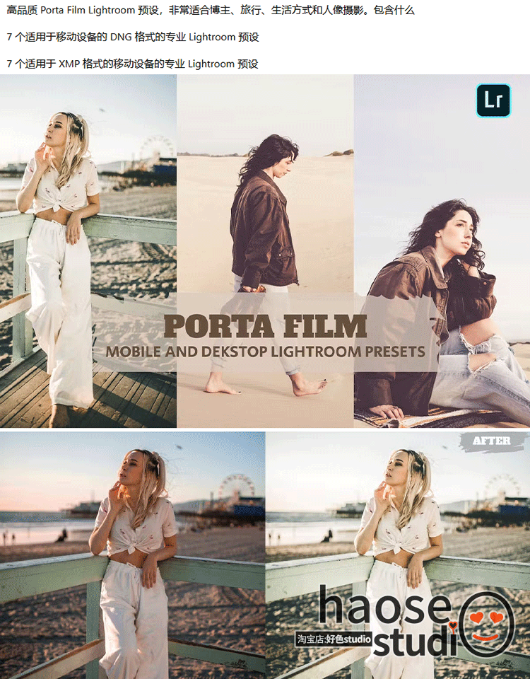 Lr调色预设PS滤镜修图 旅拍人像 纪实电影胶卷调色7款Porta Film