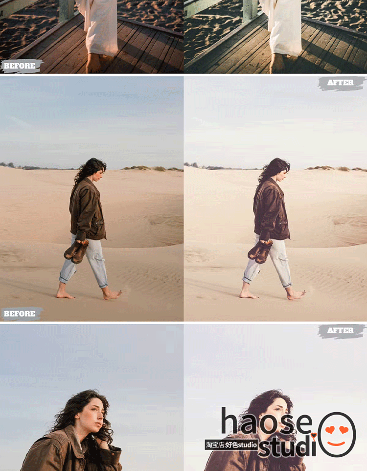 Lr调色预设PS滤镜修图 旅拍人像金色哑光人物调色7款Golden Matte