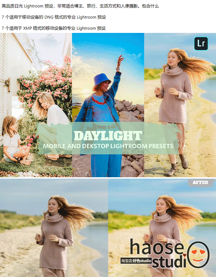 Lr调色预设PS滤镜修图 博主旅拍旅行清新人像摄影调色7款Daylight