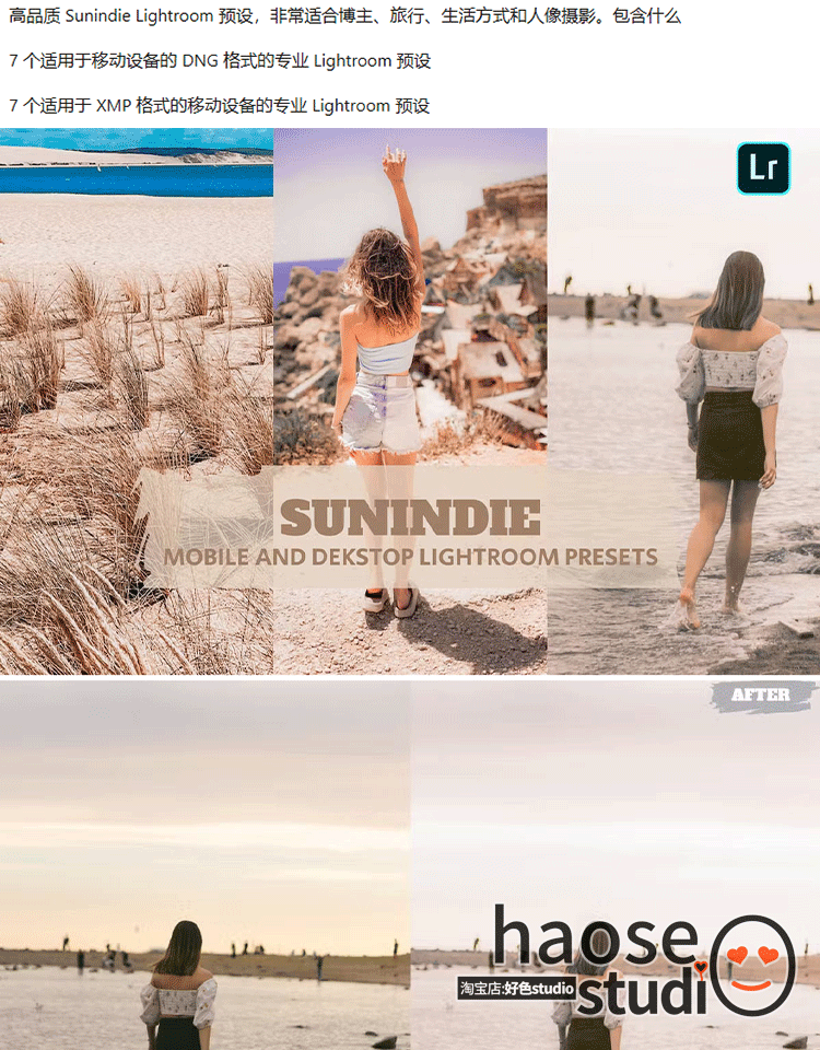 Lr调色预设PS滤镜修图 博主旅拍摄影时尚度假人像调色7款Sunindie