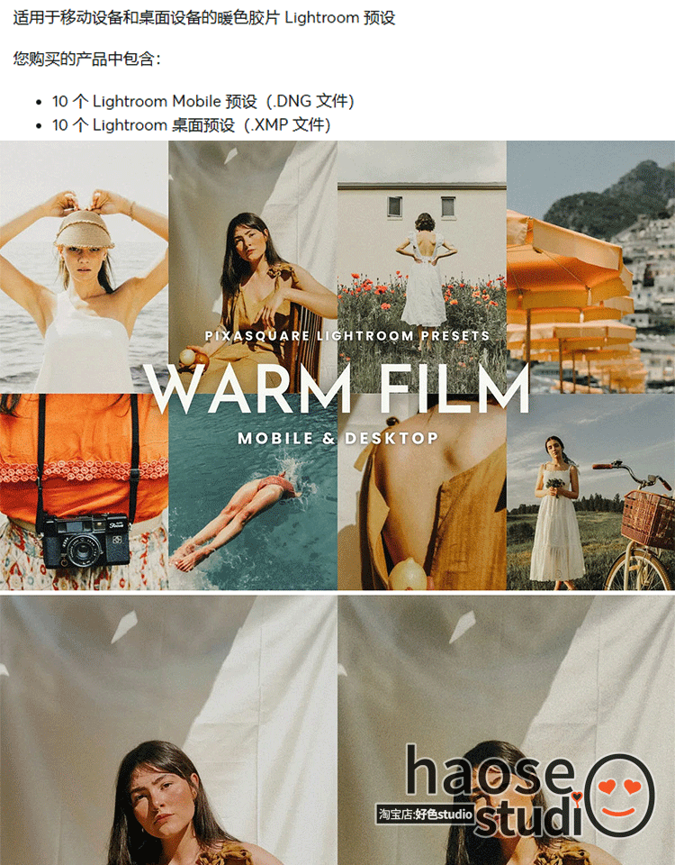 Lr调色预设PS滤镜 暖色人像摄影温暖电影质感调色10款Warm Film