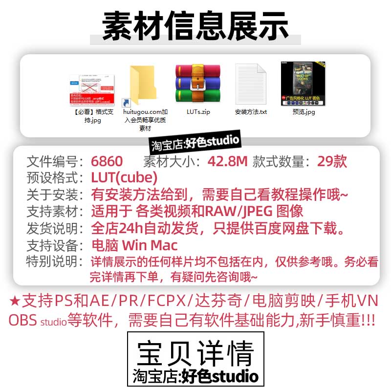 Pr剪映Ae达芬奇调色LUT预设 广告风格化LUT调色29款BEST OF LOOKS