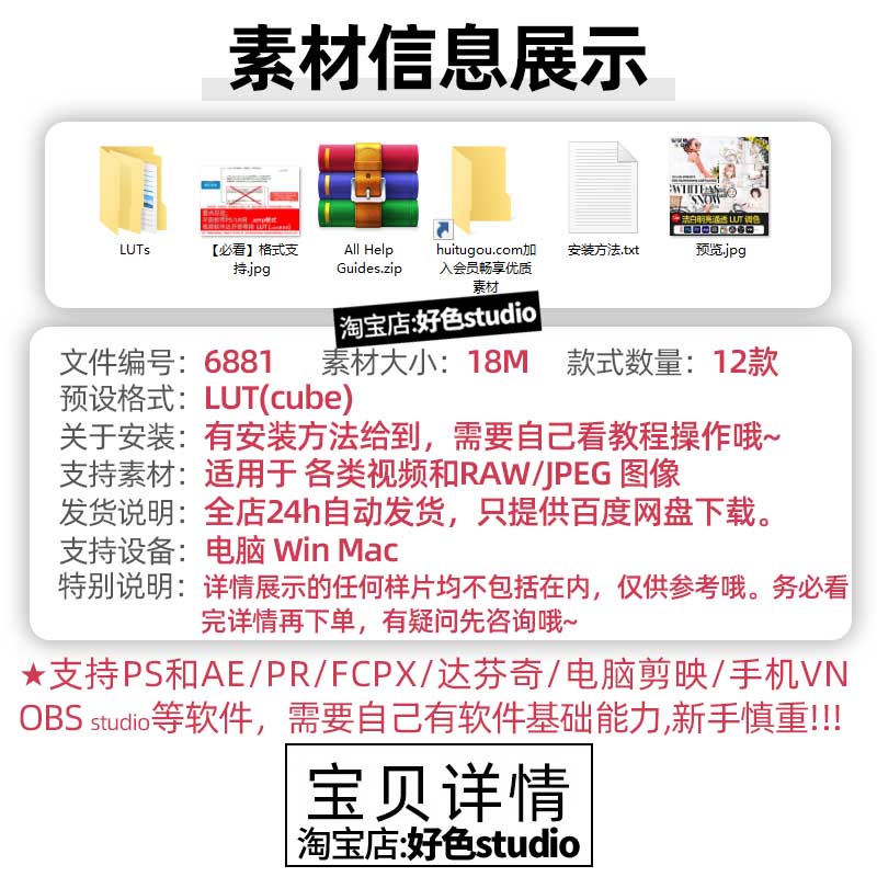 Pr剪映Ae达芬奇FCPX OBS studio调色LUT预设 电影大片视频LUT调色