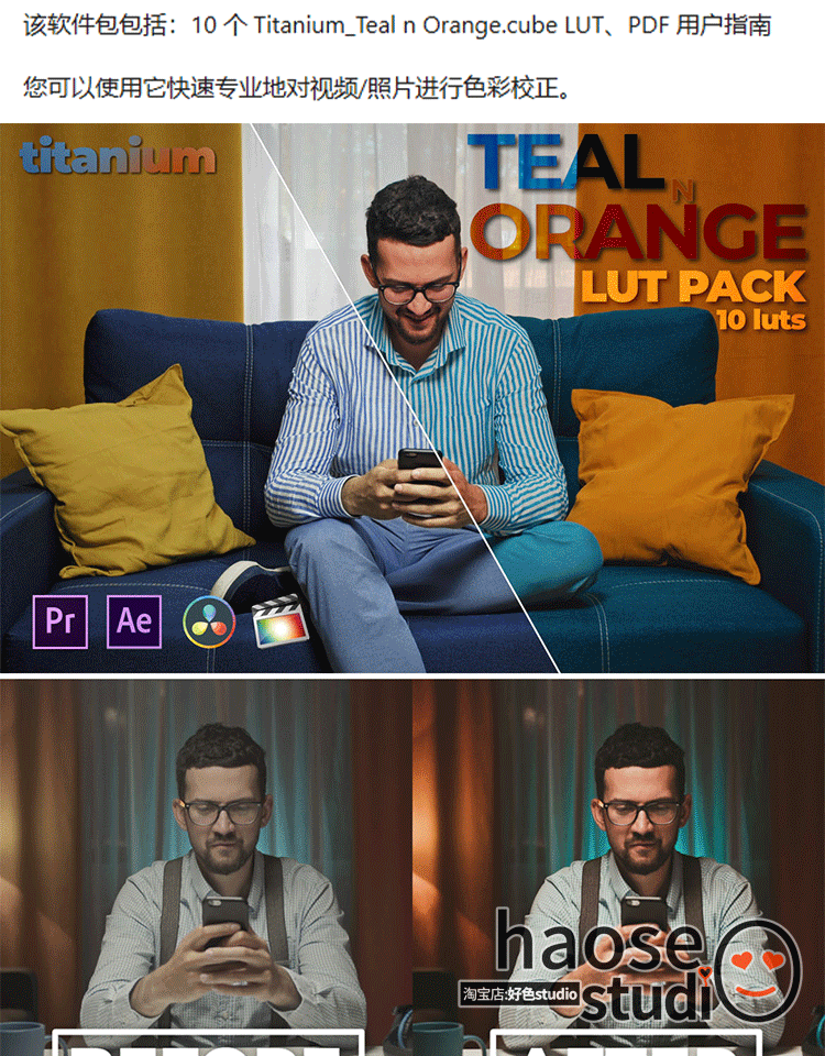 Pr剪映LUT预设 钛青橙色摄影LUT调色10款titanium teal_n orange