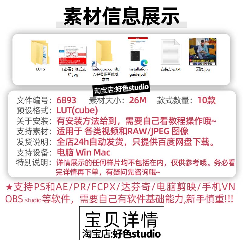 Pr剪映Ae LUT预设 高级电影包LUT调色10款Premium Film Luts Pack