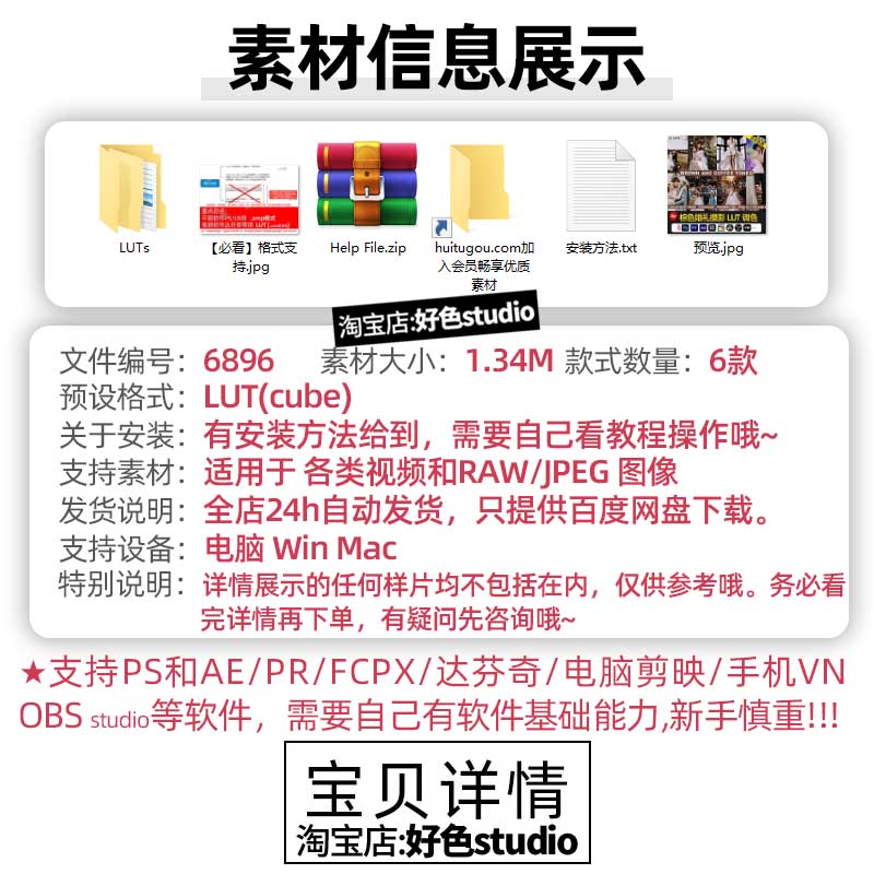 Pr剪映Ae达芬奇FCPX调色LUT预设复古暖调摄影LUT调色6款BMPCC LUT