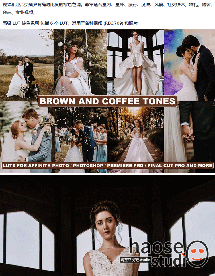 Pr剪映达芬奇调色LUT预设棕色婚礼摄影LUT调色6款Cinematic LUTs