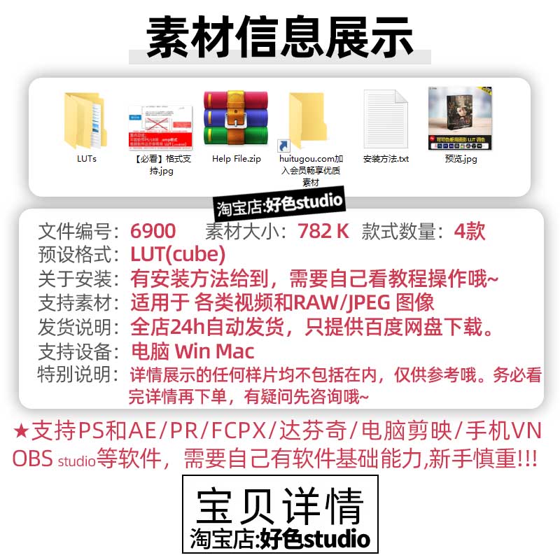 Pr剪映Ae达芬奇FCPX调色LUT预设复古暖调摄影LUT调色6款BMPCC LUT