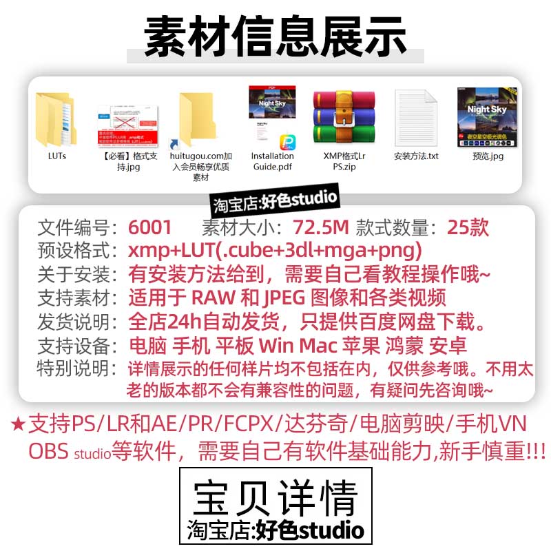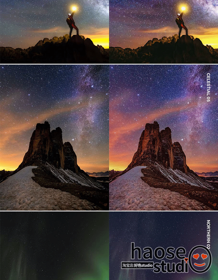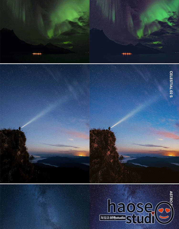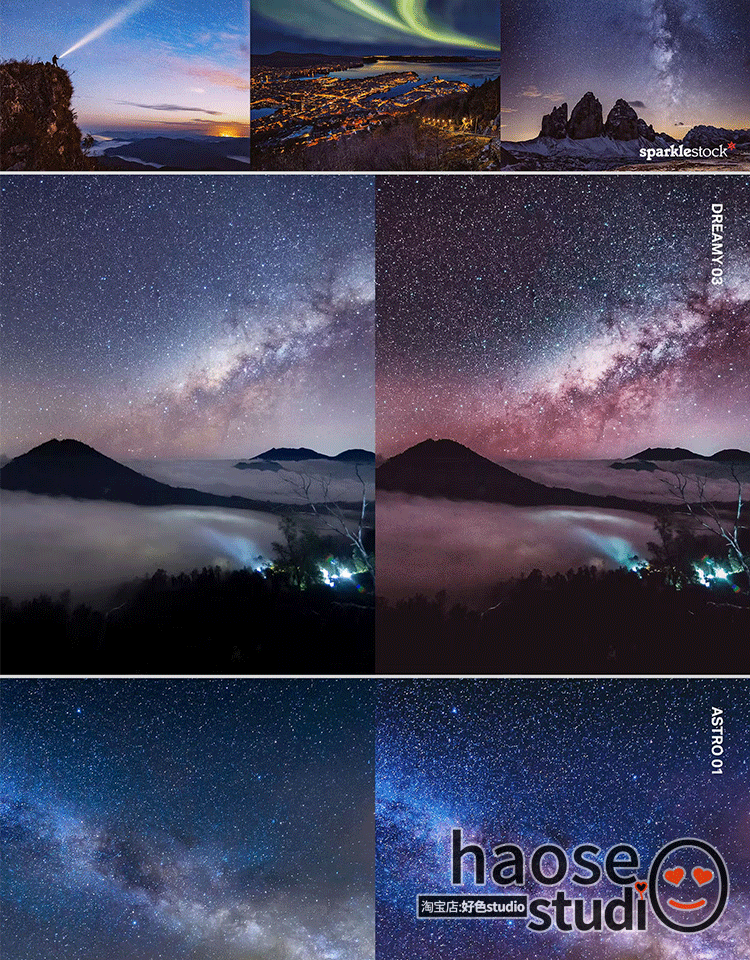 夜空宇宙星空极光Lr调色预设PS滤镜LUT视频调色Pr剪映 达芬奇 Ae