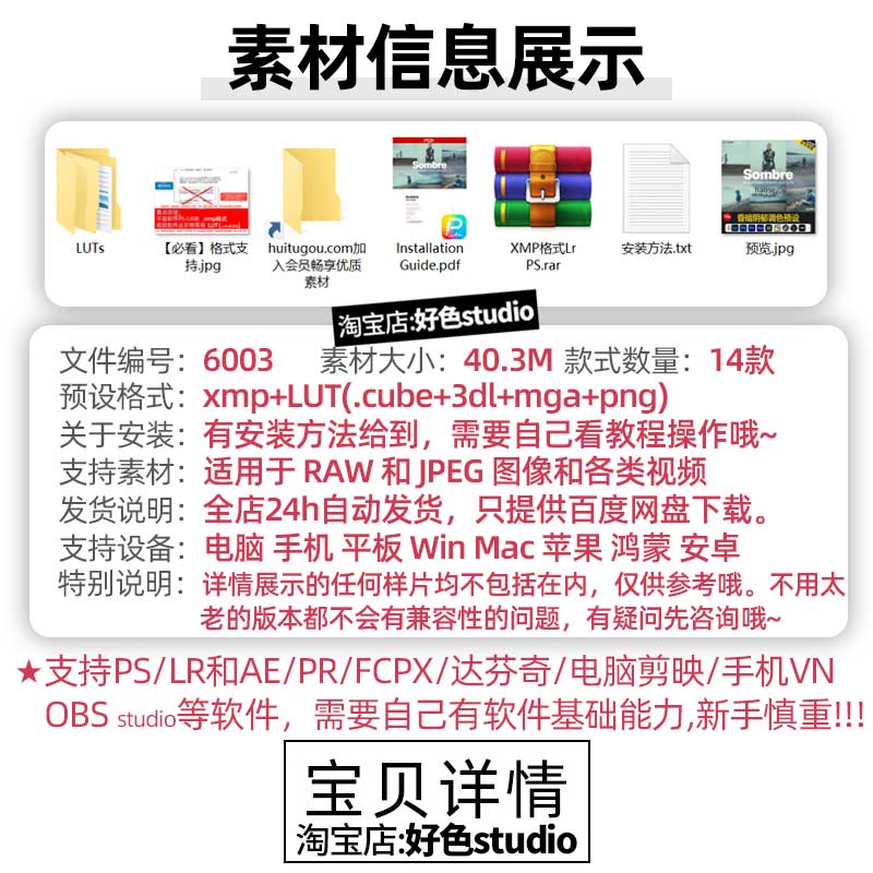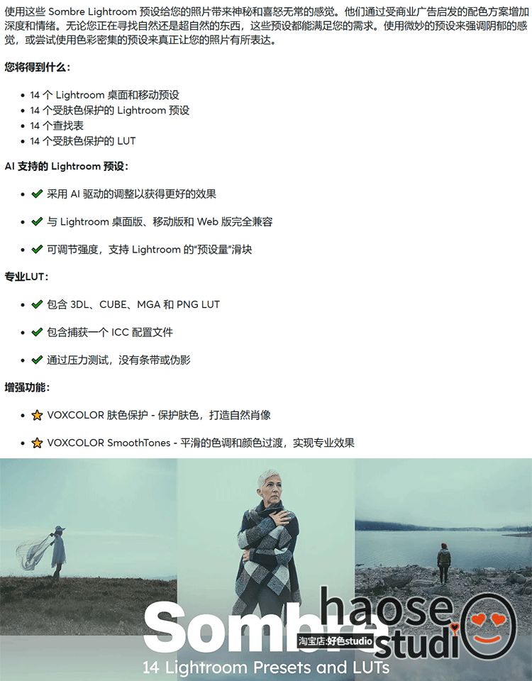 Lr调色预设PS昏暗忧郁自然风景人像LUTs短视频照片调色剪映达芬奇