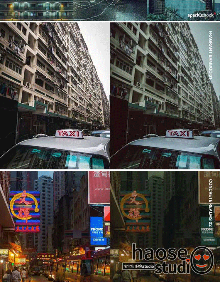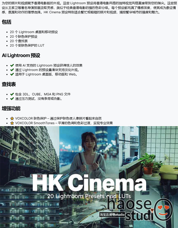 Lr PS预设滤镜LUT达芬奇PR王家卫香港都市电影调色20款HK Cinema