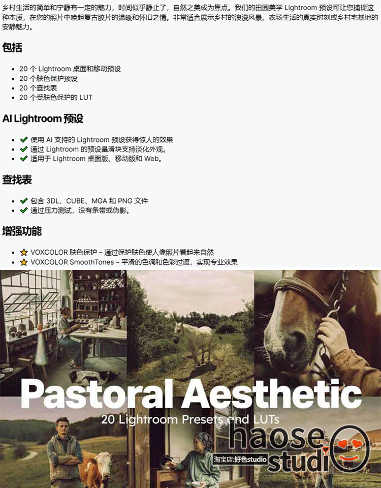 LR预设滤镜LUT温暖怀旧田园乡村风光调色20款Pastoral Aesthetic