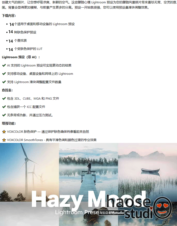 Lr预设风景P图达芬奇视频Luts调色朦胧雾霾情绪调色14款Hazy Mood
