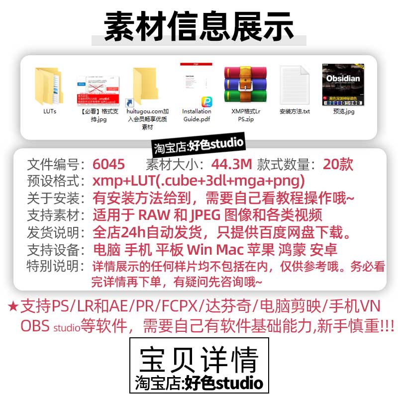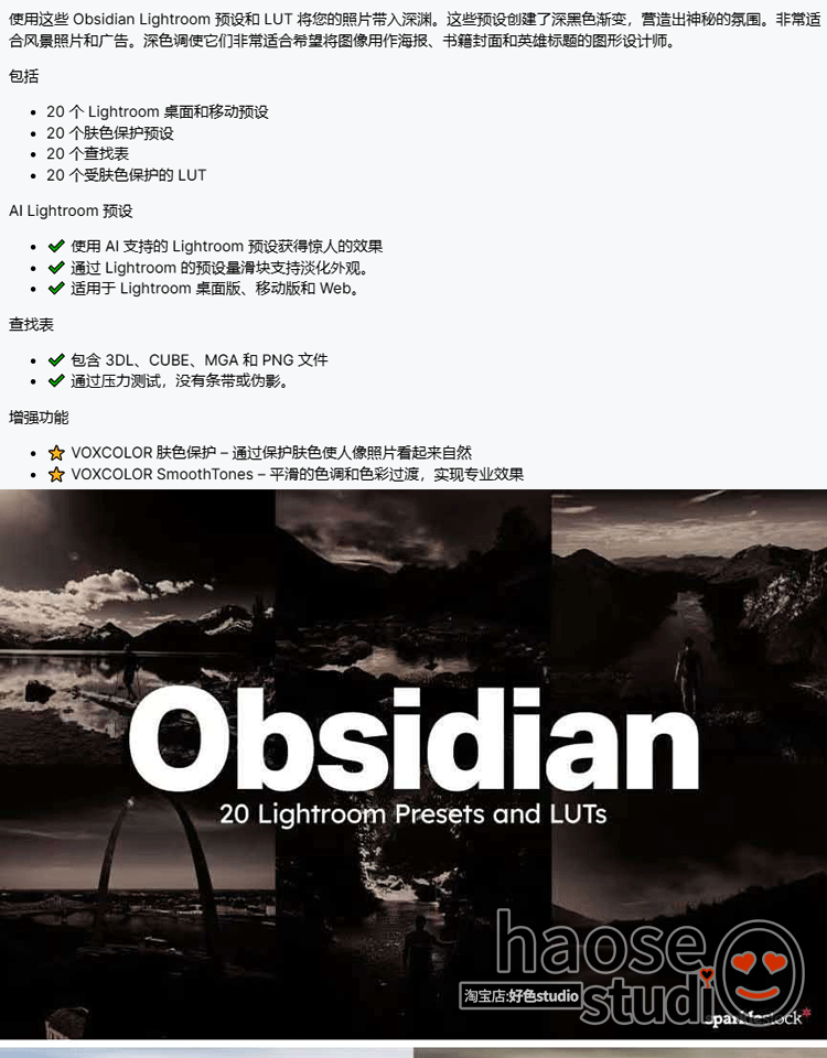 LR调色LUT预设照片Pr视频广告海报黑色深渊神秘调色20款Obsidian