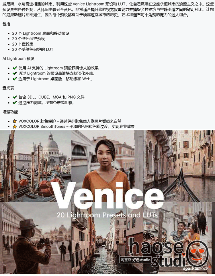Lr调色LUT预设包 城市摄影视频旅拍威尼斯永恒浪漫调色20款Venice