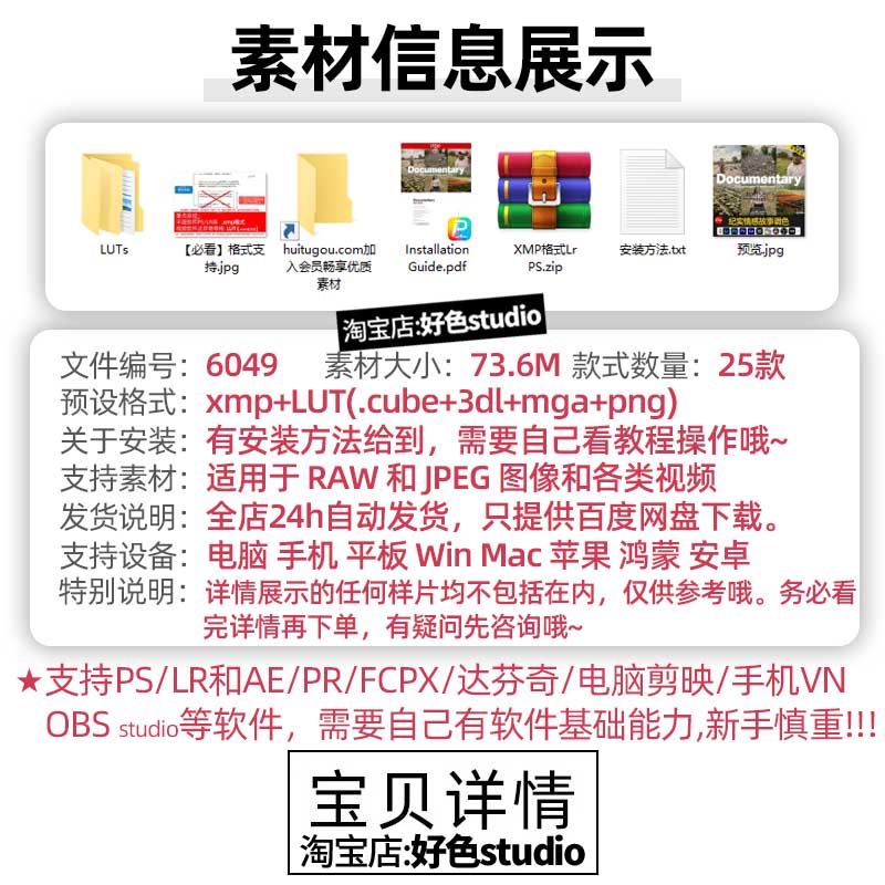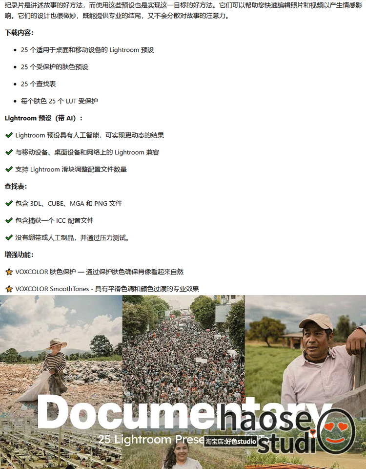 LR调色摄影照片视频LUT预设滤镜纪实情感故事调色25款Documentary