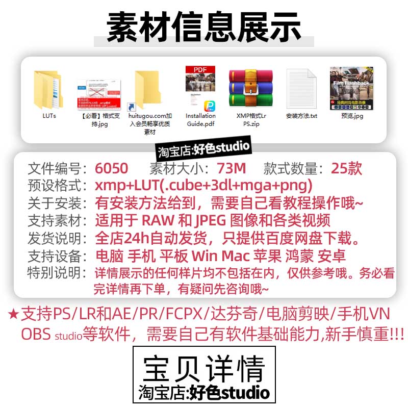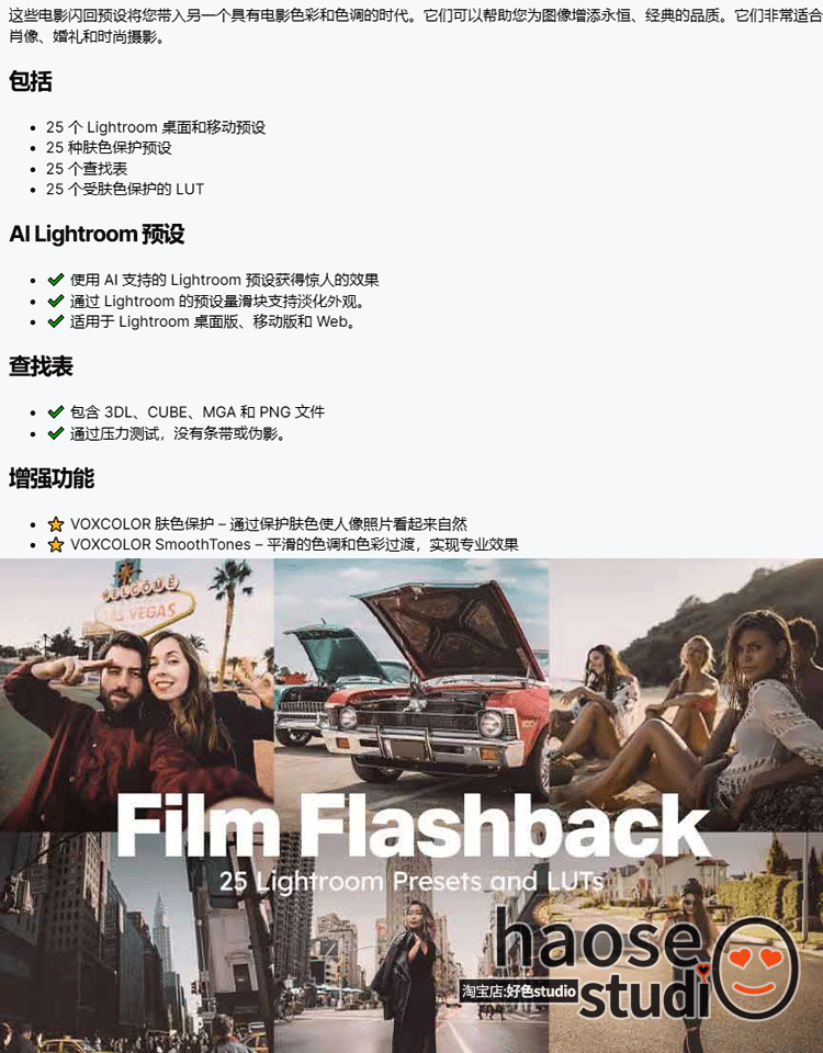 Lr调色LUT预设婚礼人像经典时尚电影肖像调色25款Film Flashback