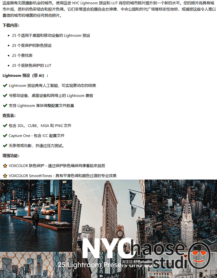 Lr旅拍调色ps滤镜视频LUT预设 美国纽约城市建筑质朴调色25款NYC