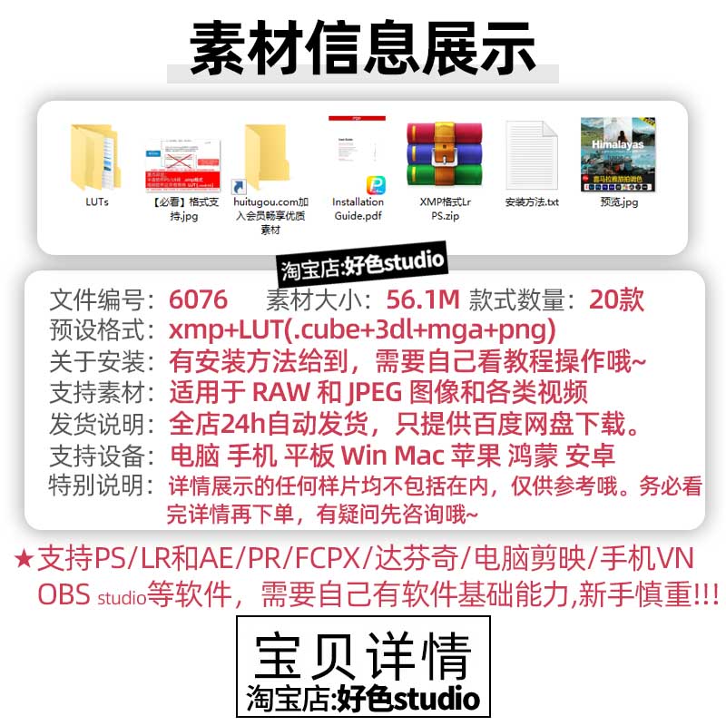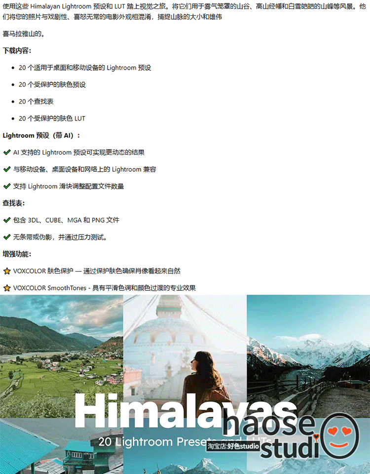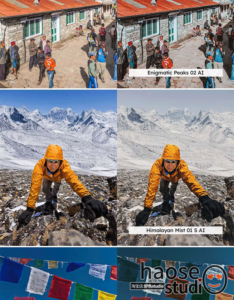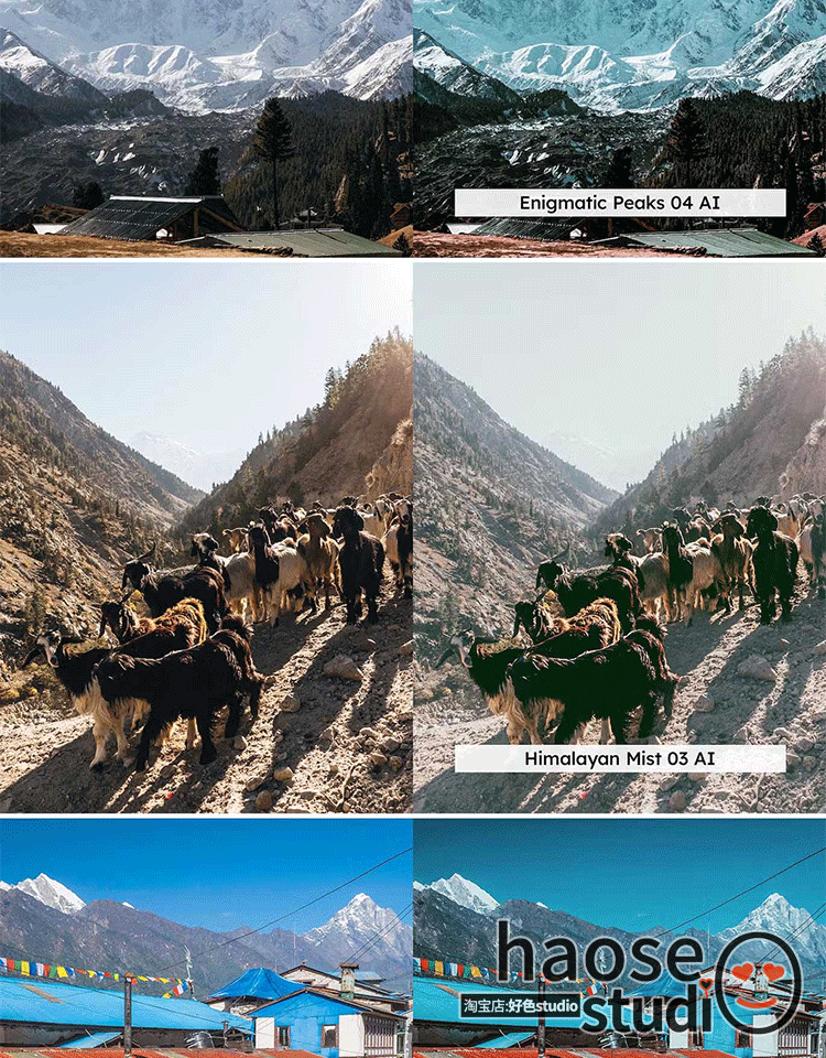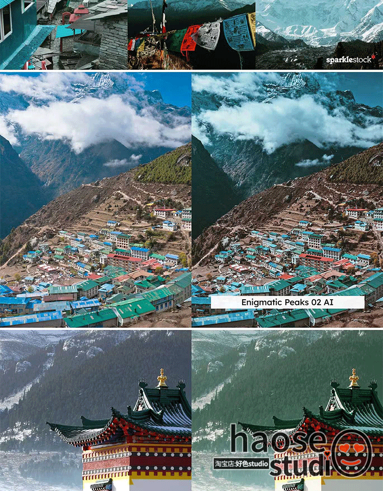 Lr预设LUT调色Pr剪映达芬奇ae雪山高原旅拍风景调色20款Himalayas