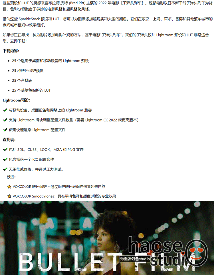 lr预设PS城市夜景后期剪映LUT电影胶片风格化调色25款Bullet Film