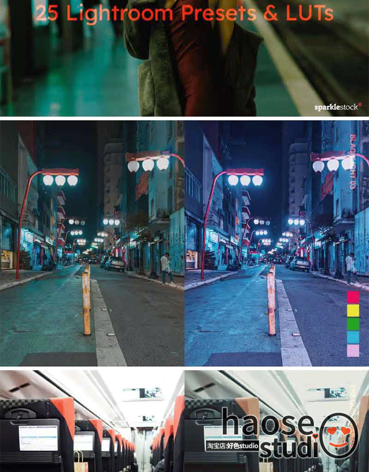 lr预设ps暗黑风格化调色lut赛博朋克城市调色25款Cyberpunk SciFi