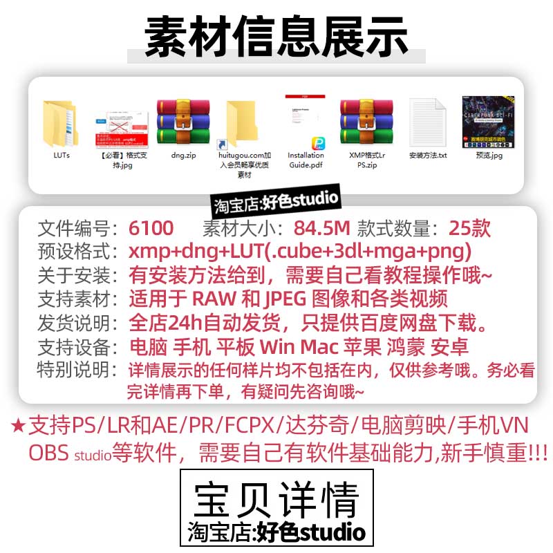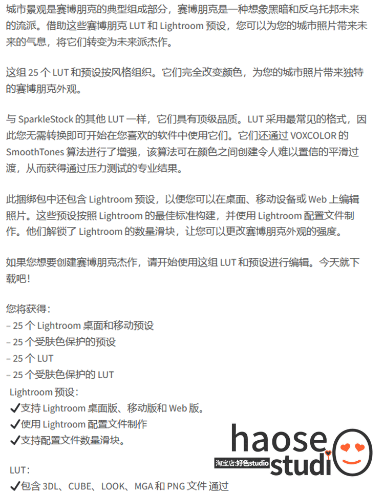 lr预设ps暗黑风格化调色lut赛博朋克城市调色25款Cyberpunk SciFi