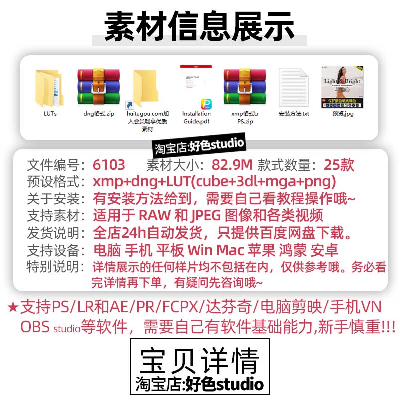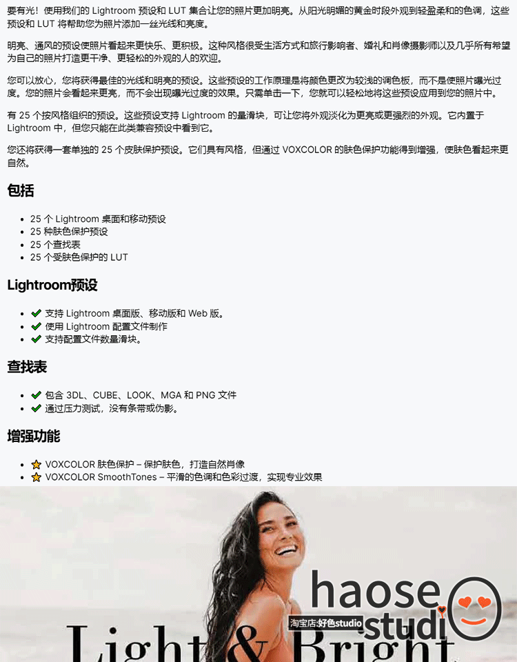 Lr预设人像摄影PS视频LUT调色 保护肤色明亮调色25款Light Bright