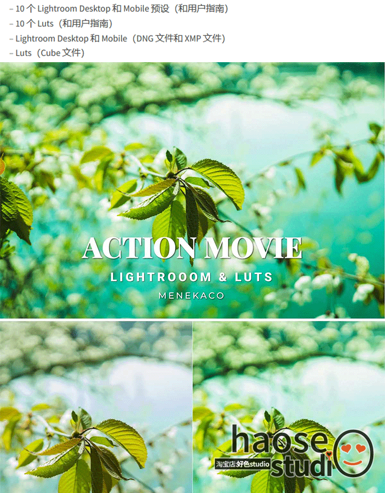 Lr预设PS滤镜剪映视频LUT调色动作电影明亮调色10款Action Movie