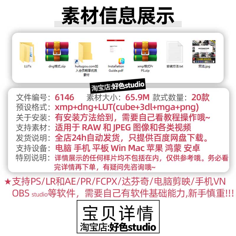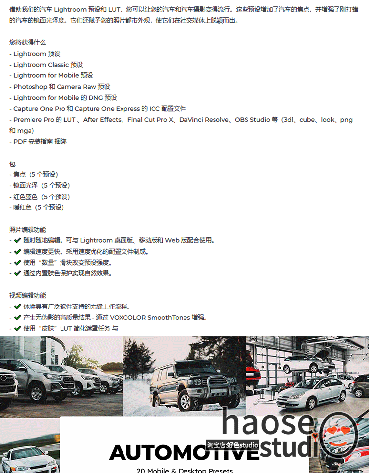 Lr预设剪映LUT调色pr达芬奇FCPX机车汽车摄影调色23款Automotive
