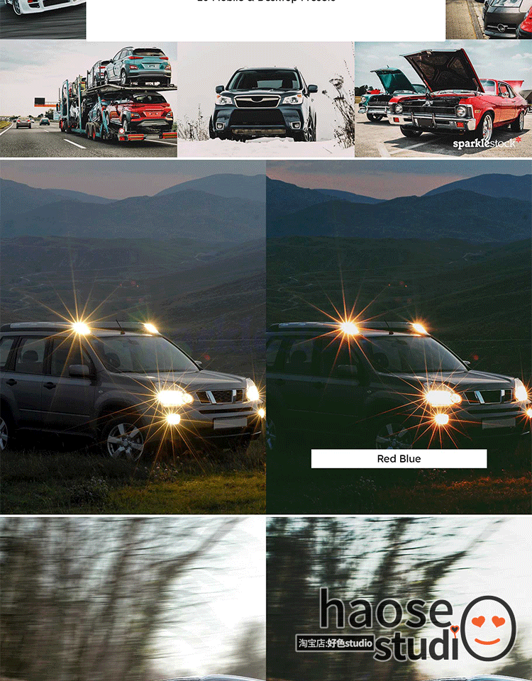 Lr预设ps滤镜LUT调色pr剪映FCPX汽车摄影增强调色20款Automotive