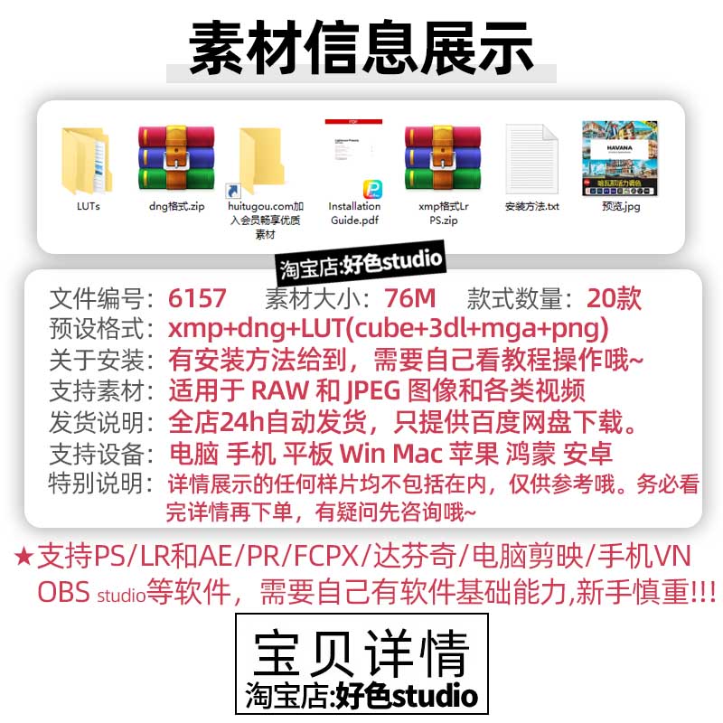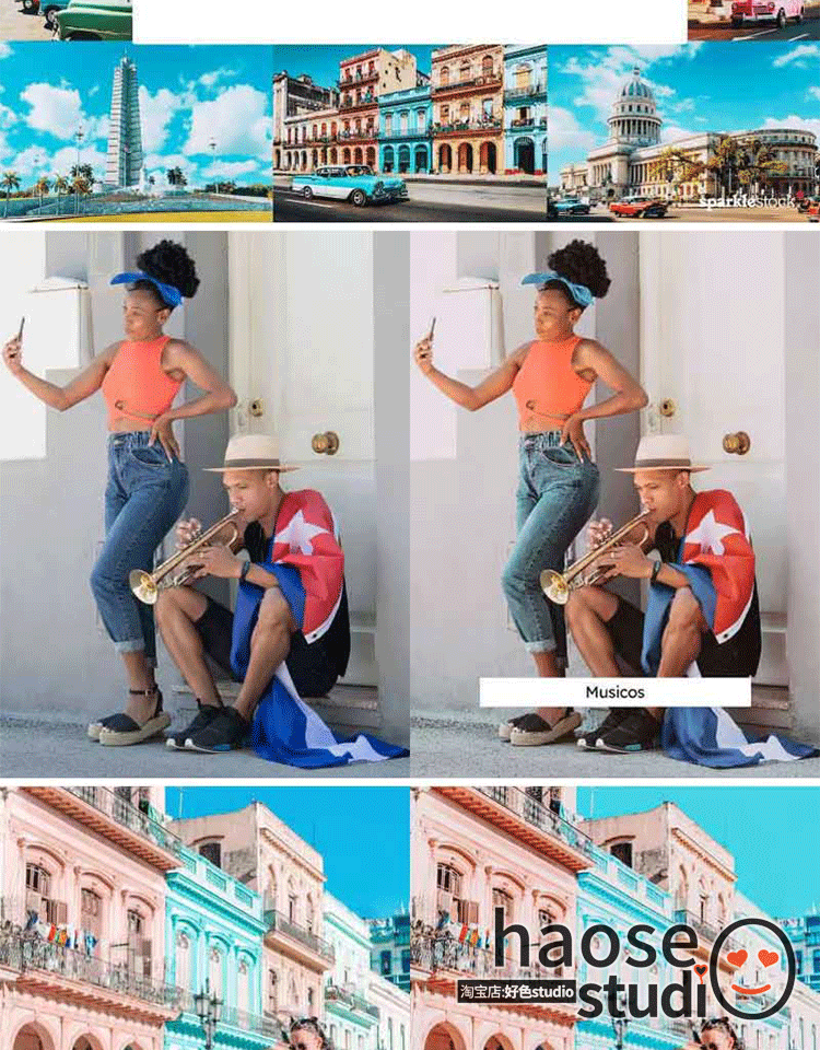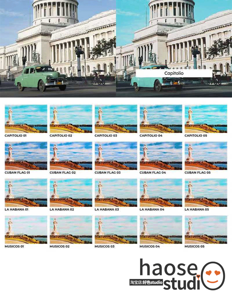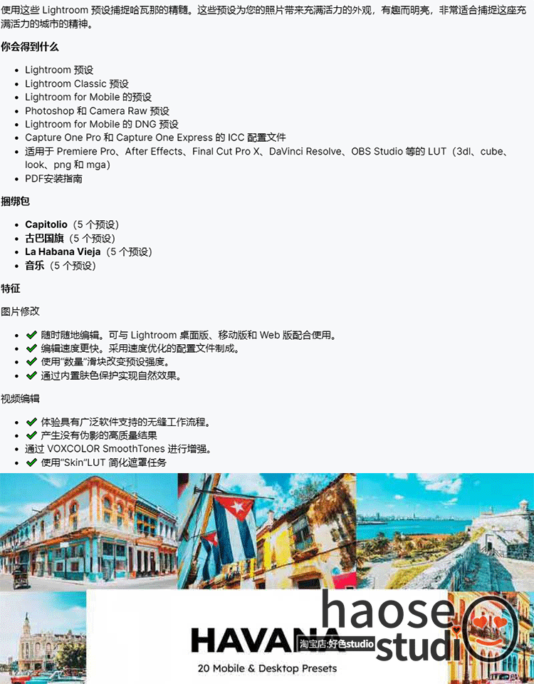Lr预设PS修图LUT调色pr达芬奇剪映FCPX哈瓦那活力调色20款Havana
